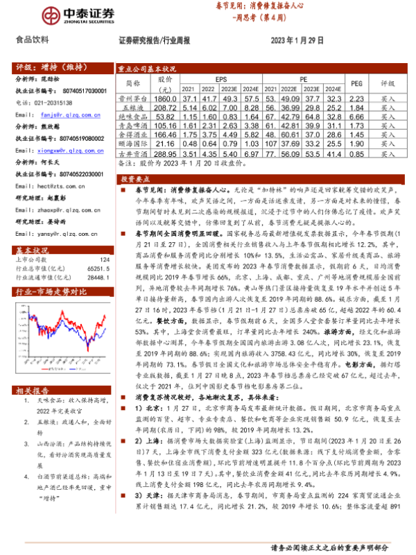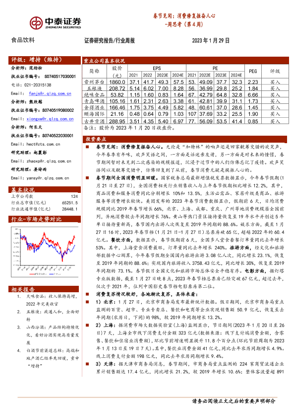【中泰证券】【20230129】20230129-中泰证券-食品饮料行业周思考(第4周):春节见闻:消费修复振奋人心-13页