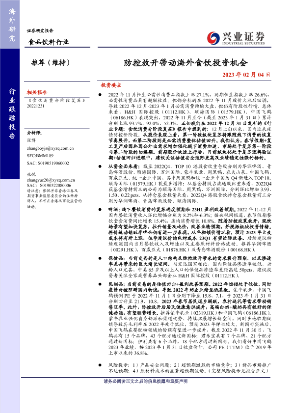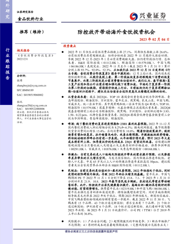 【兴业证券】【20230204】防控放开带动海外食饮投资机会-10页