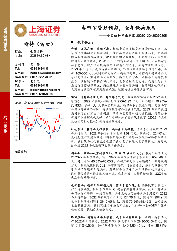 【上海证券】【20230205】20230205-上海证券-食品饮料行业周报:春节消费超预期,全年保持乐观-19页