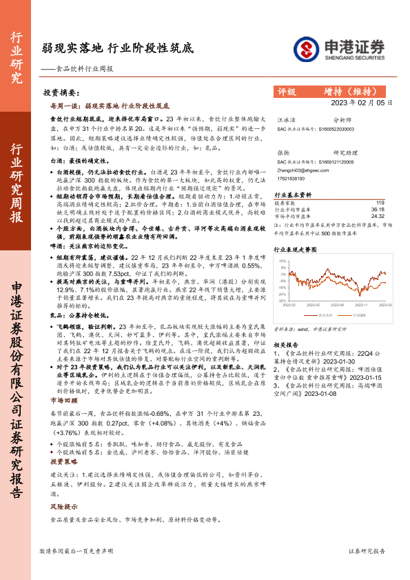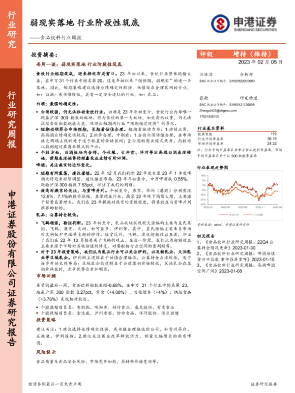 【申港证券】【20230205】20230205-申港证券-食品饮料行业周报:弱现实落地 行业阶段性筑底-15页