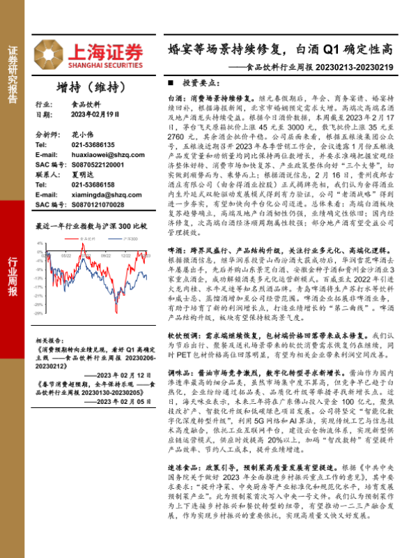 【上海证券】【20230219】20230219-上海证券-食品饮料行业周报:婚宴等场景持续修复,白酒Q1确定性高-18页