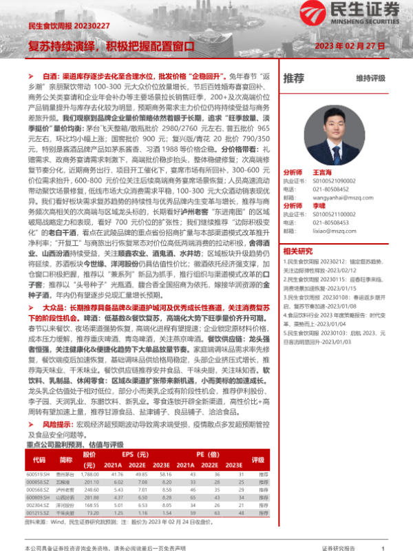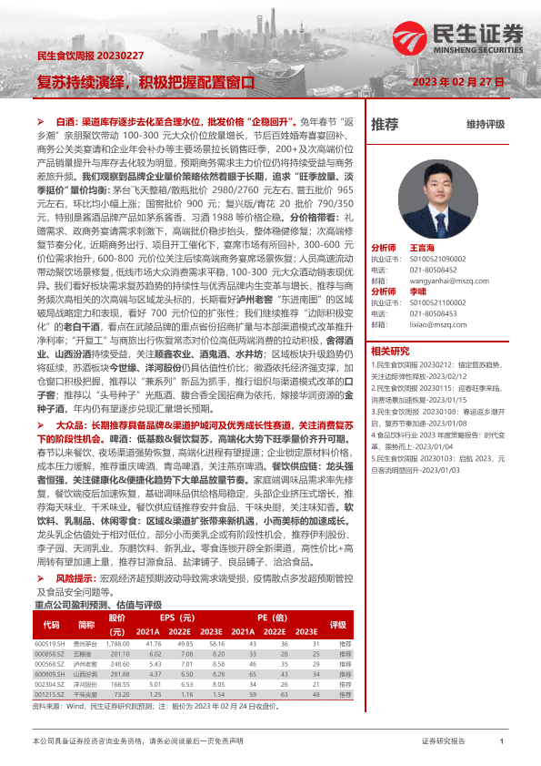 【民生证券】【20230227】20230227-民生证券-食饮行业周报:复苏持续演绎,积极把握配置窗口-13页