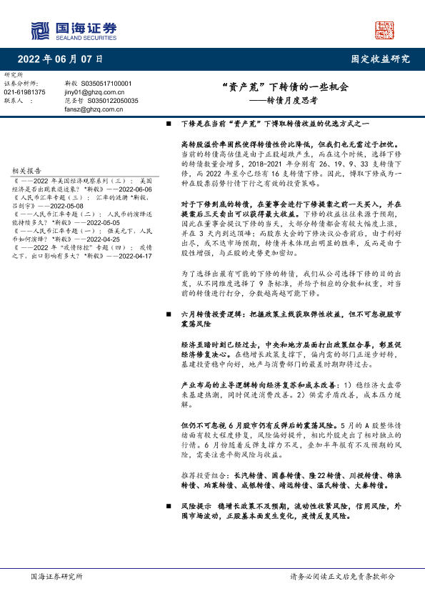 【国海证券】【20220607】转债月度思考:“资产荒”下转债的一些机会-17页
