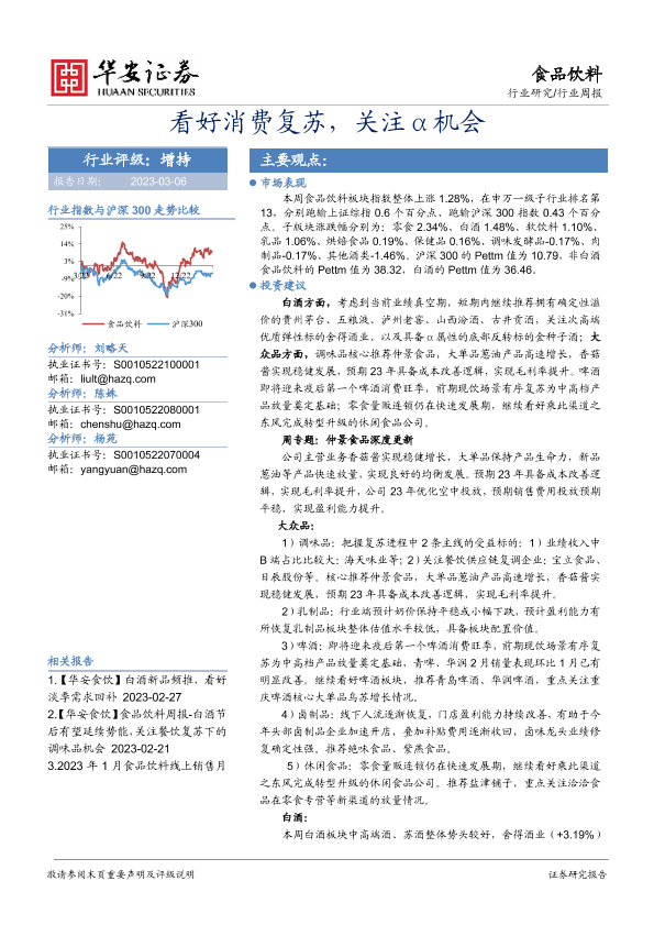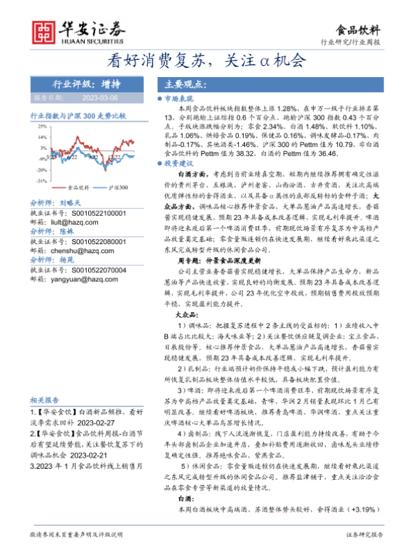 【华安证券】【20230306】20230306-华安证券-食品饮料行业周报:看好消费复苏,关注α机会-18页