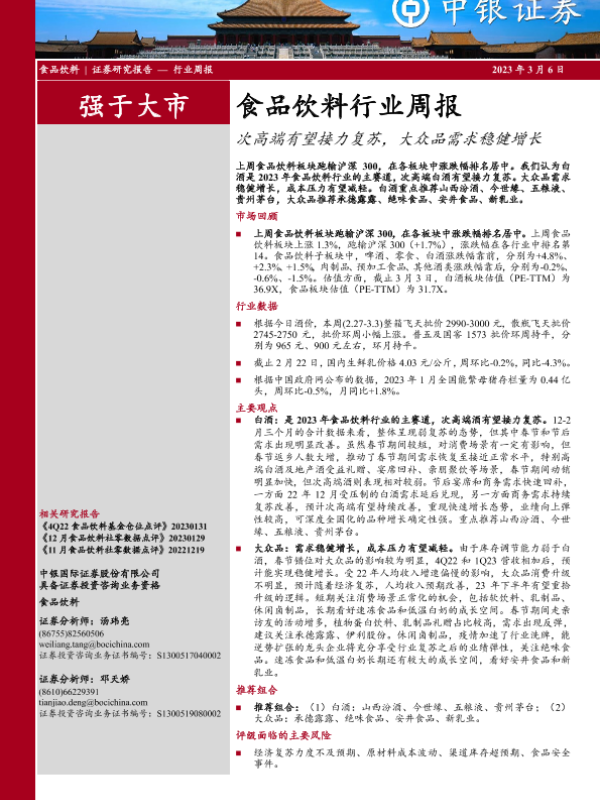 【中银证券】【20230306】20230306-中银证券-食品饮料行业周报:次高端有望接力复苏,大众品需求稳健增长-19页