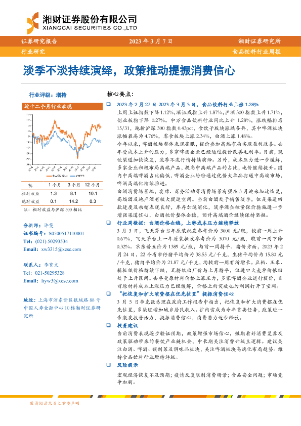【湘财证券】【20230307】20230307-湘财证券-食品饮料行业周报:淡季不淡持续演绎,政策推动提振消费信心-11页