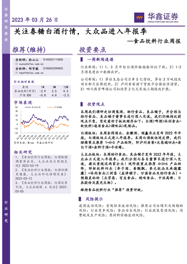【华鑫证券】【20230326】20230326-华鑫证券-食品饮料行业周报:关注春糖白酒行情,大众品进入年报季-24页