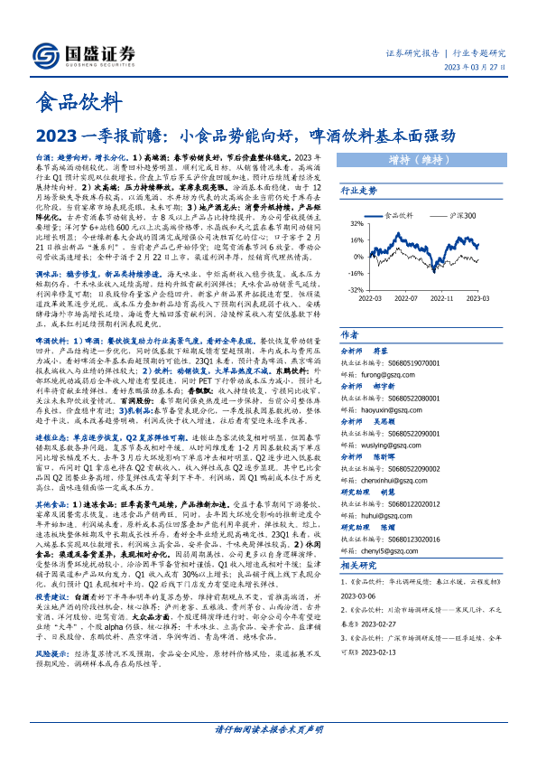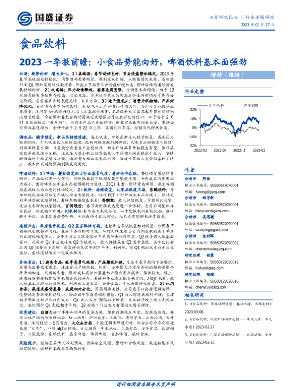 【国盛证券】【20230327】食品饮料2023一季报前瞻:小食品势能向好,啤酒饮料基本面强劲-12页