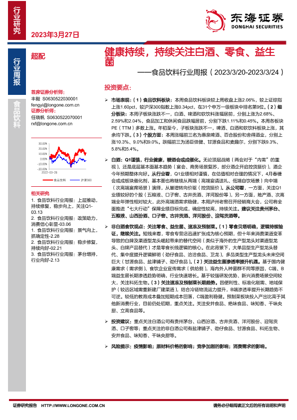 【东海证券】【20230327】20230327-东海证券-食品饮料行业周报:健康持续,持续关注白酒、零食、益生菌-18页