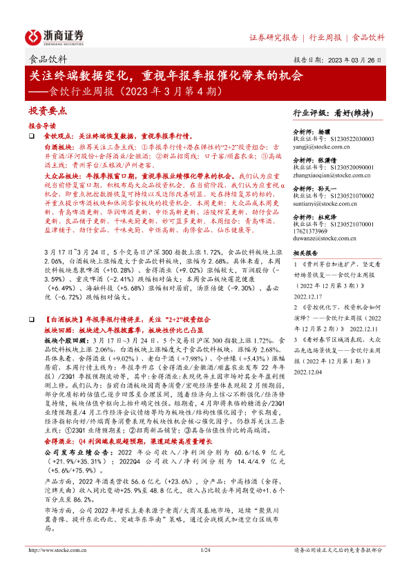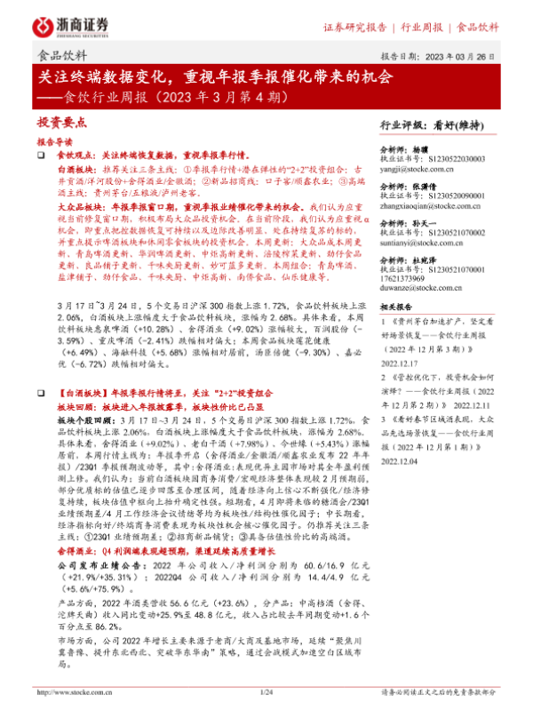 【浙商证券】【20230326】食饮行业周报(2023年3月第4期):关注终端数据变化,重视年报季报催化带来的机会-24页