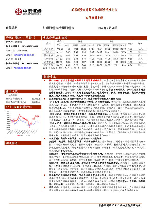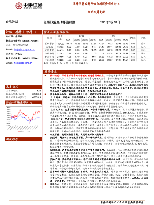 【中泰证券】【20230328】20230328-中泰证券-白酒双周更新:宴席消费回补带动白酒消费明确向上-12页