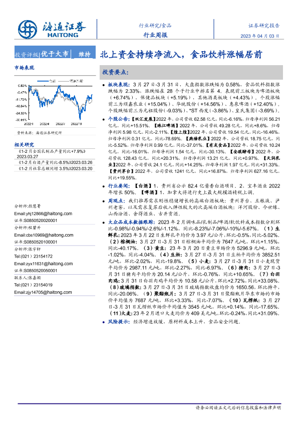 【海通证券】【20230403】20230403-海通证券-食品行业周报:北上资金持续净流入,食品饮料涨幅居前-17页