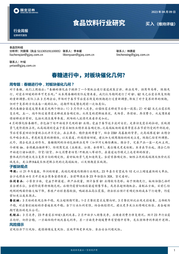 【国金证券】【20230409】20230409-国金证券-食品饮料行业研究:春糖进行中,对板块催化几何?-13页