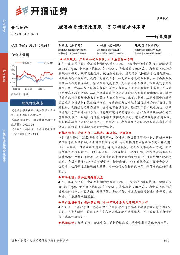 【开源证券】【20230409】20230409-开源证券-食品饮料行业周报:糖酒会反馈理性客观,复苏回暖趋势不变-10页