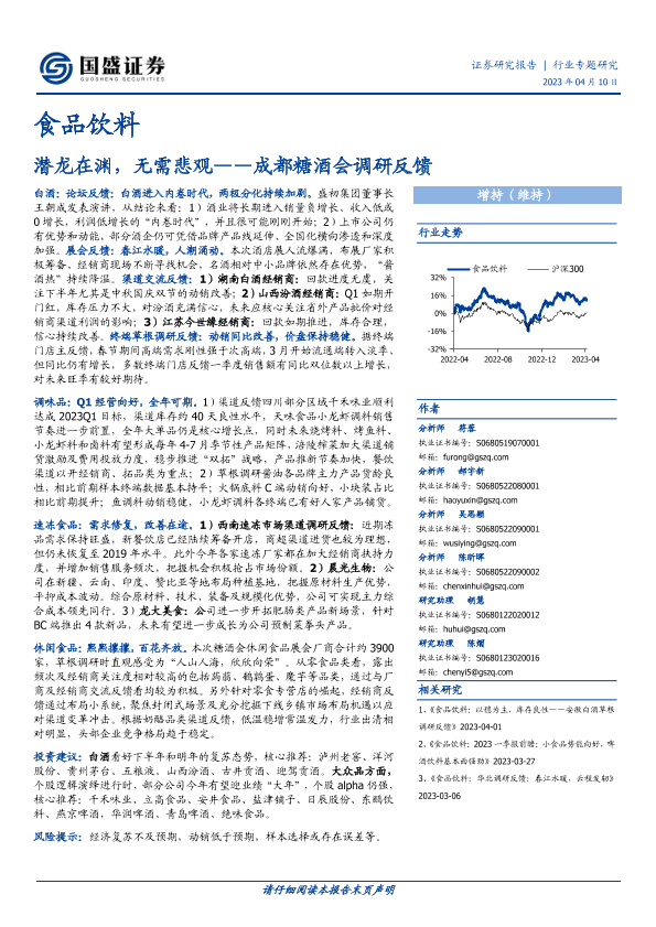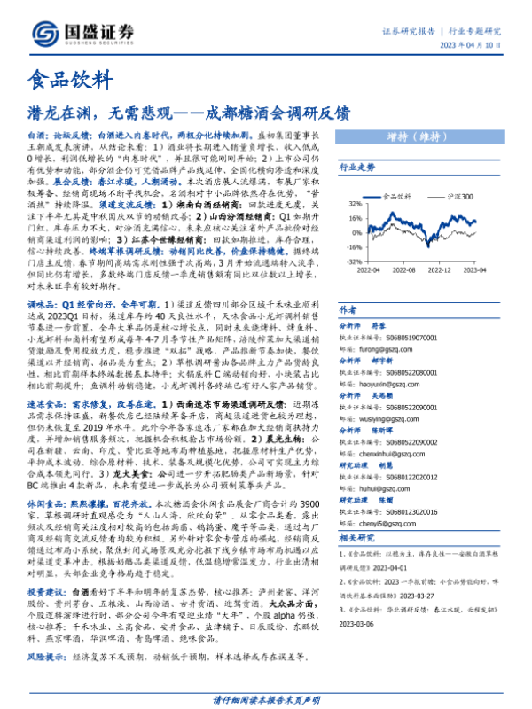 【国盛证券】【20230410】食品饮料行业专题研究:成都糖酒会调研反馈——潜龙在渊,无需悲观-10页