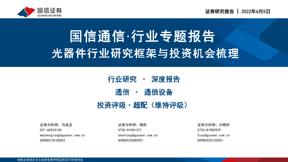 【国信证券】【20220605】通信行业专题报告:光器件行业研究框架与投资机会梳理-95页