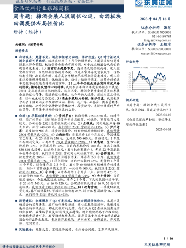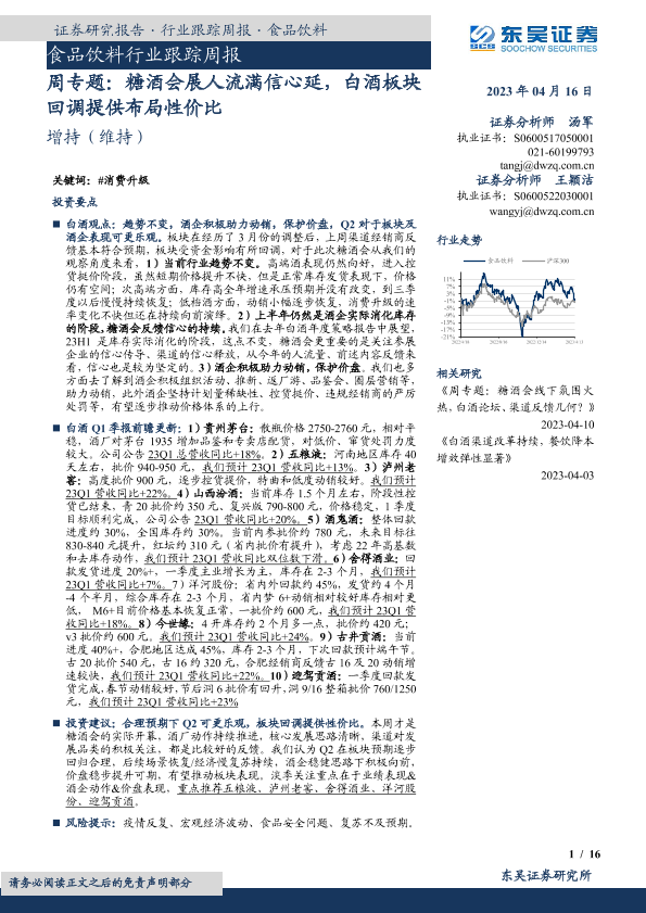 【东吴证券】【20230416】食品饮料行业跟踪周报:周专题:糖酒会展人流满信心延,白酒板块回调提供布局性价比-16页