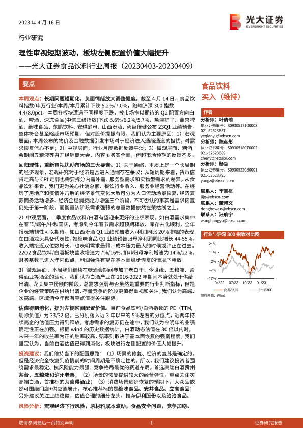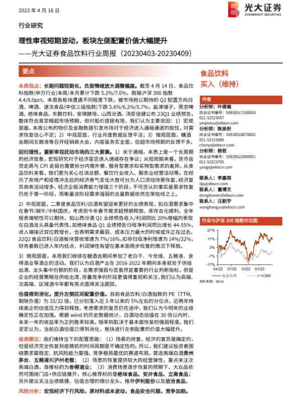 【光大证券】【20230416】20230416-光大证券-食品饮料行业周报:理性审视短期波动,板块左侧配置价值大幅提升-12页