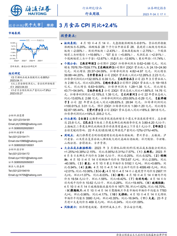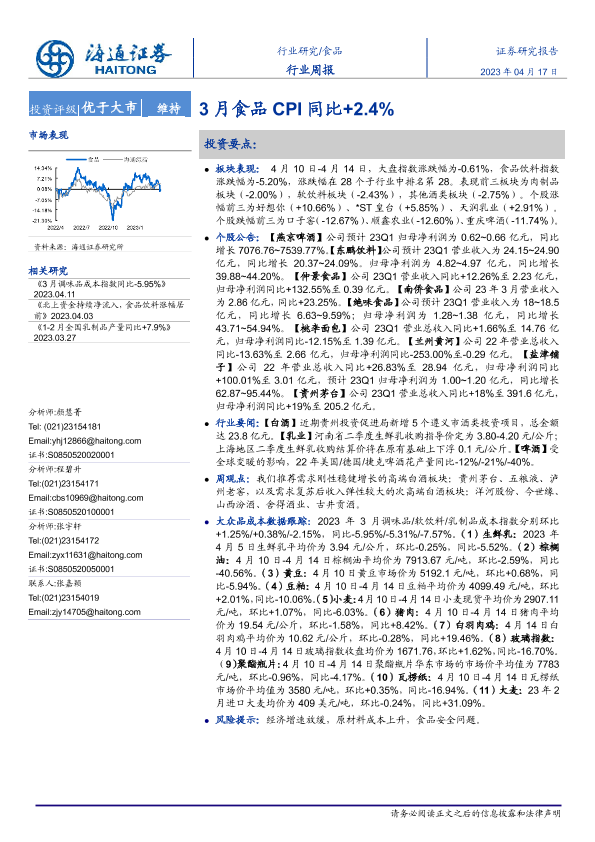 【海通证券】【20230417】20230417-海通证券-食品行业周报:3月食品CPI同比+2.4%-17页