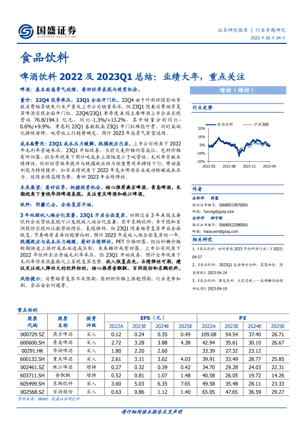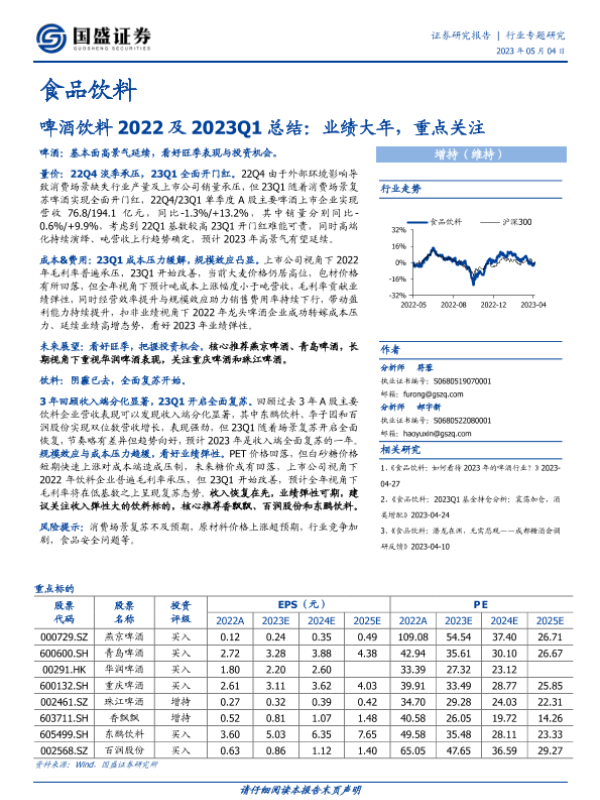 【国盛证券】【20230504】啤酒饮料2022及2023Q1总结:业绩大年,重点关注-13页