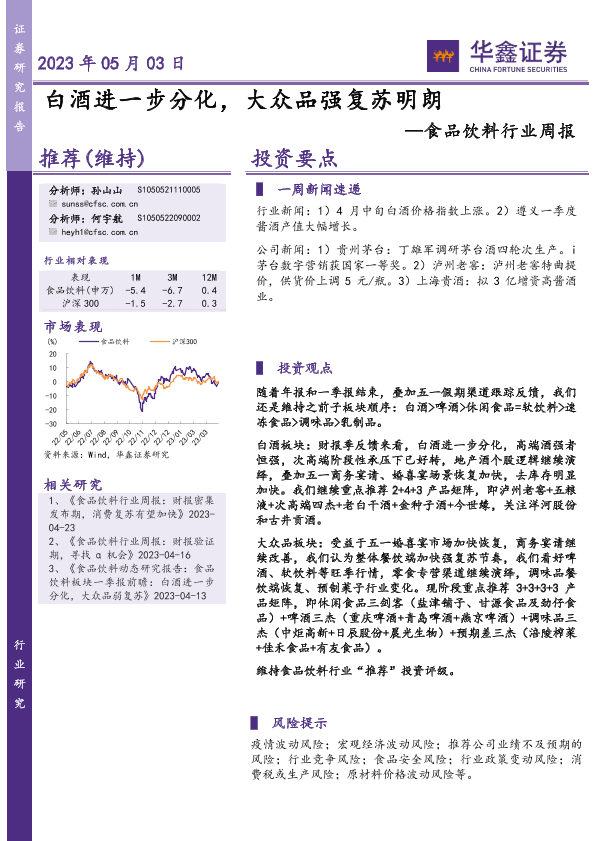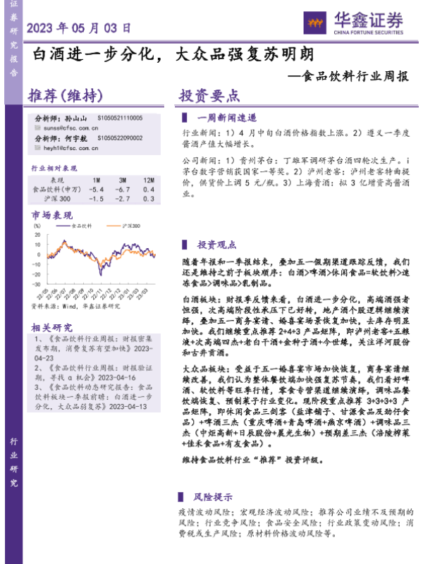 【华鑫证券】【20230503】20230503-华鑫证券-食品饮料行业周报:白酒进一步分化,大众品强复苏明朗-45页