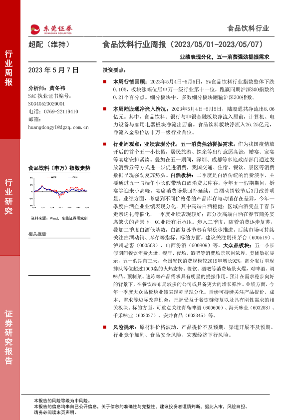 【东莞证券】【20230507】20230507-东莞证券-食品饮料行业周报:业绩表现分化,五一消费强劲提振需求-14页