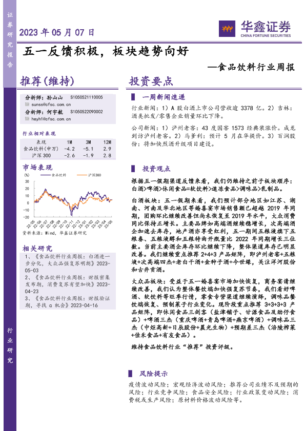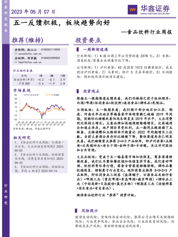 【华鑫证券】【20230507】20230507-华鑫证券-食品饮料行业周报:五一反馈积极,板块趋势向好-26页