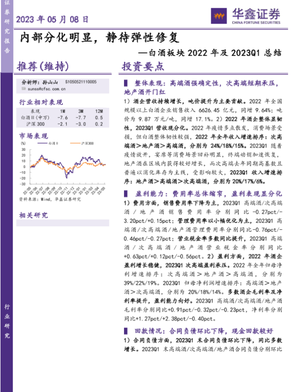 【华鑫证券】【20230508】白酒板块2022年及2023Q1总结:内部分化明显,静待弹性修复-21页