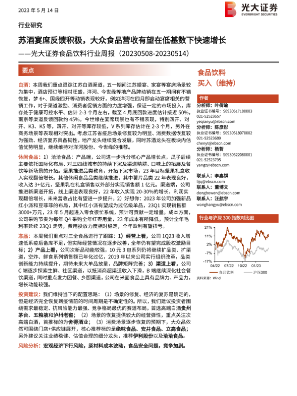 【光大证券】【20230514】20230514-光大证券-食品饮料行业周报:苏酒宴席反馈积极,大众食品营收有望在低基数下快速增长-11页