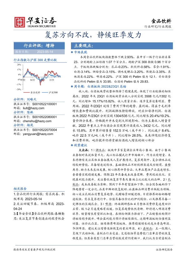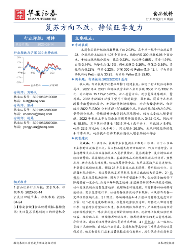 【华安证券】【20230514】20230514-华安证券-食品饮料行业周报:复苏方向不改,静候旺季发力-22页