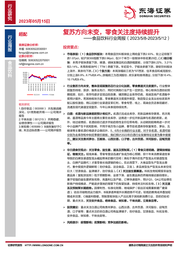 【东海证券】【20230515】20230515-东海证券-食品饮料行业周报:复苏方向未变,零食关注度持续提升-17页