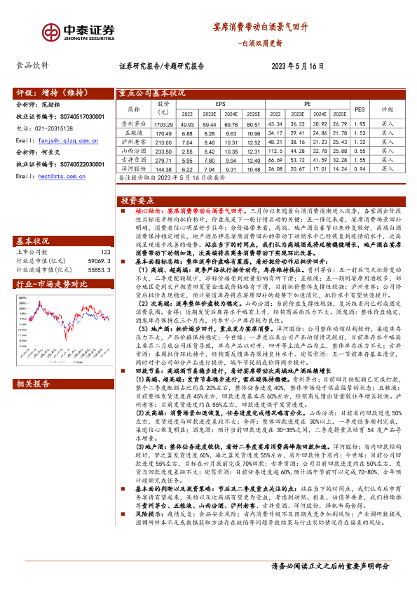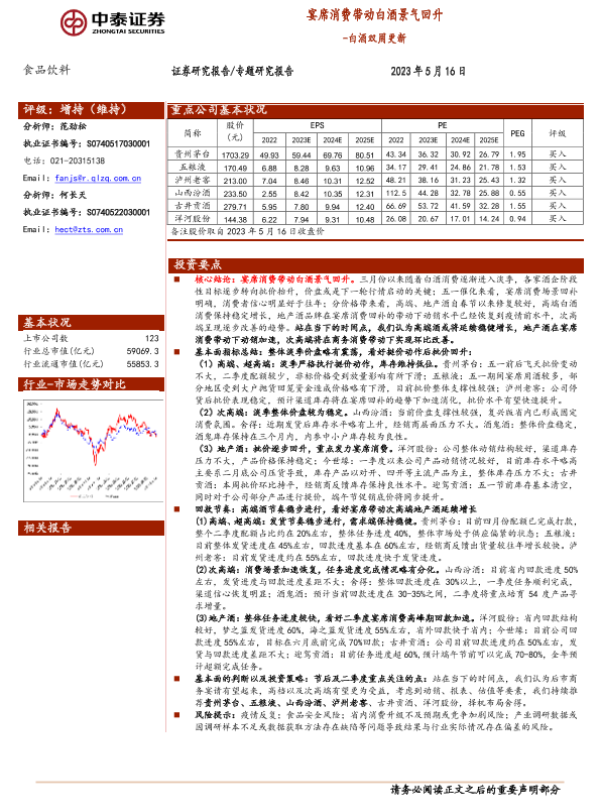 【中泰证券】【20230516】20230516-中泰证券-白酒双周更新:宴席消费带动白酒景气回升-12页