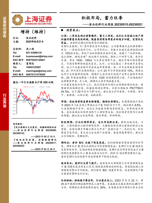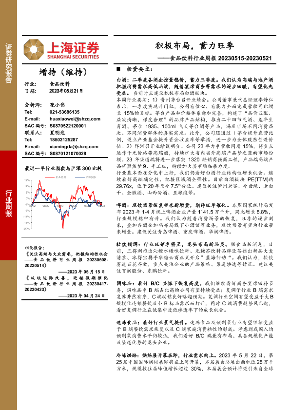 【上海证券】【20230521】20230521-上海证券-食品饮料行业周报:积极布局,蓄力旺季-19页