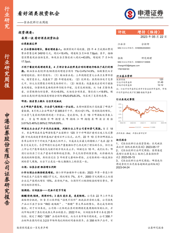 【申港证券】【20230522】20230522-申港证券-食品饮料行业周报:看好酒类投资机会-17页