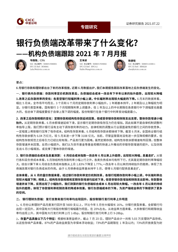 【中金公司】【20210722】机构负债端跟踪2021年7月月报:银行负债端改革带来了什么变化?-16页