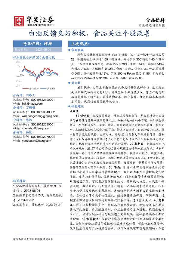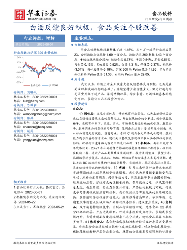【华安证券】【20230604】20230604-华安证券-食品饮料行业周报:白酒反馈良好积极,食品关注个股改善-20页
