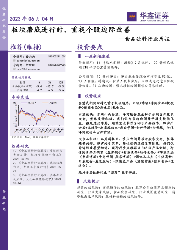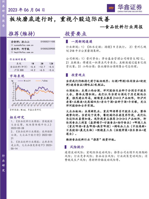 【华鑫证券】【20230604】20230604-华鑫证券-食品饮料行业周报:板块磨底进行时,重视个股边际改善-25页