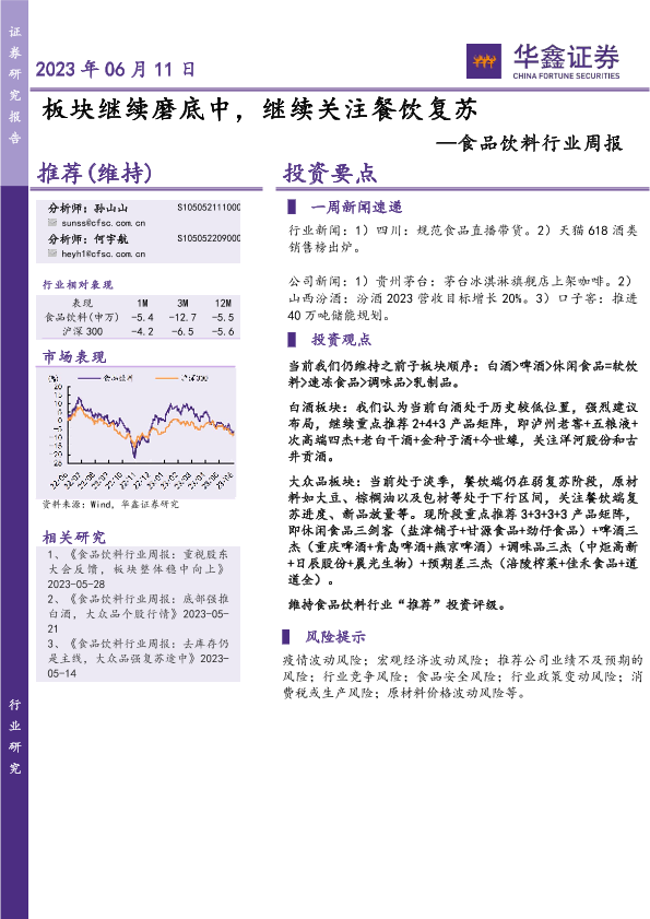 【华鑫证券】【20230611】20230611-华鑫证券-食品饮料行业周报:板块继续磨底中,继续关注餐饮复苏-22页