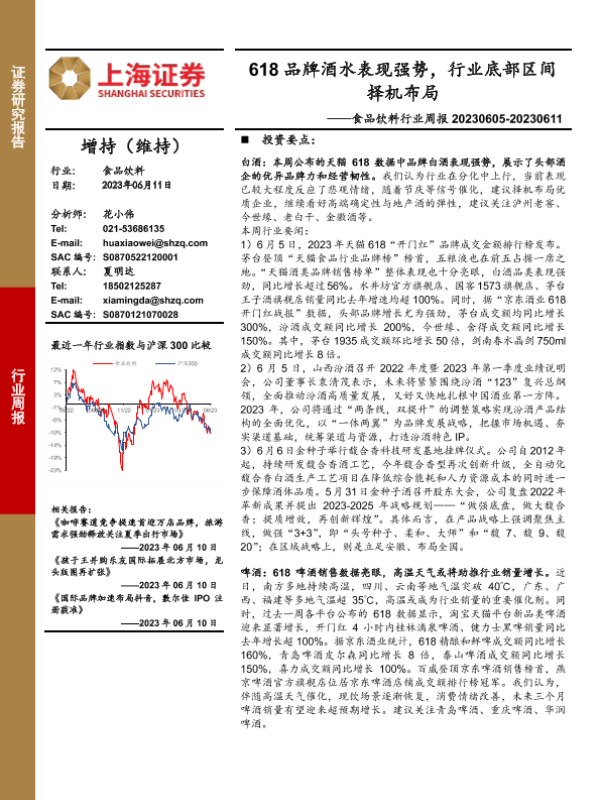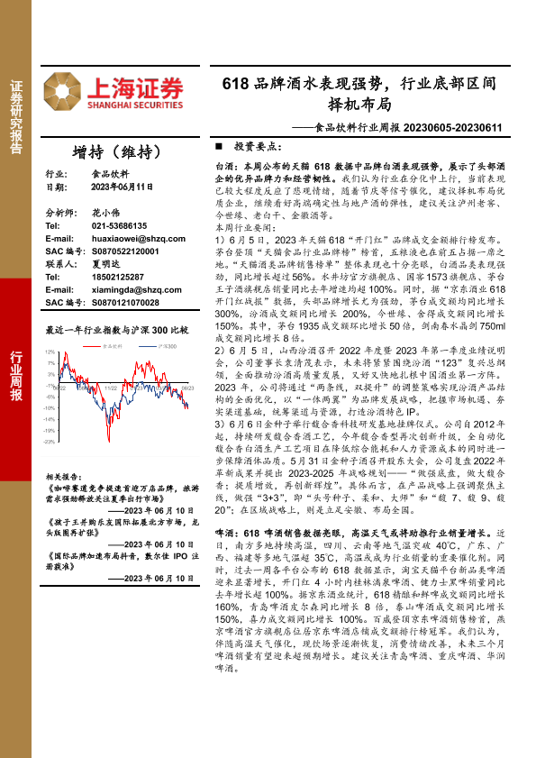 【上海证券】【20230611】20230611-上海证券-食品饮料行业周报:618品牌酒水表现强势,行业底部区间择机布局-21页