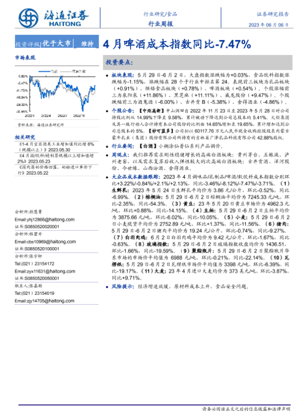 【海通证券】【20230606】20230606-海通证券-食品行业周报:4月啤酒成本指数同比-7.47%-17页