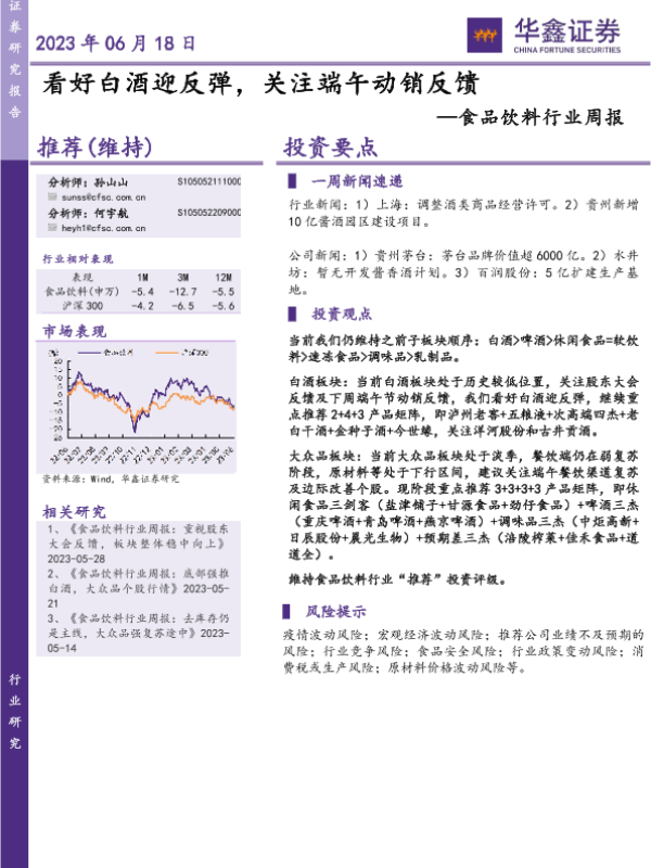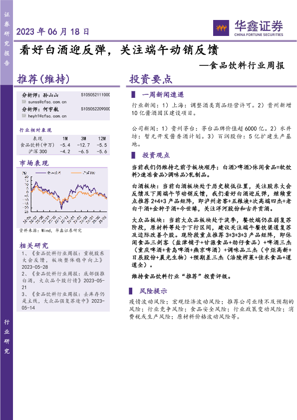 【华鑫证券】【20230618】20230618-华鑫证券-食品饮料行业周报:看好白酒迎反弹,关注端午动销反馈-22页