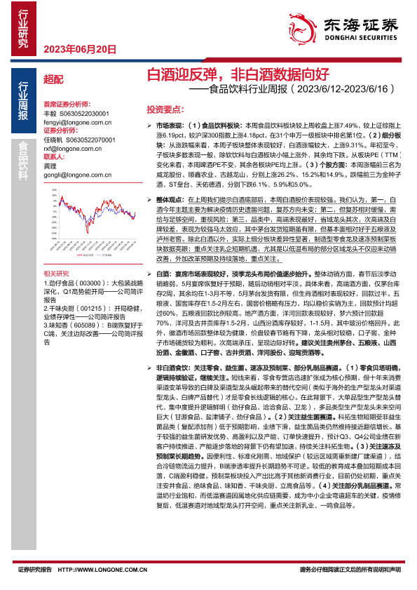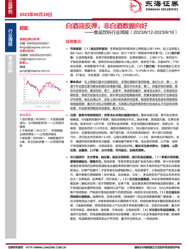 【东海证券】【20230620】20230620-东海证券-食品饮料行业周报:白酒迎反弹,非白酒数据向好-12页