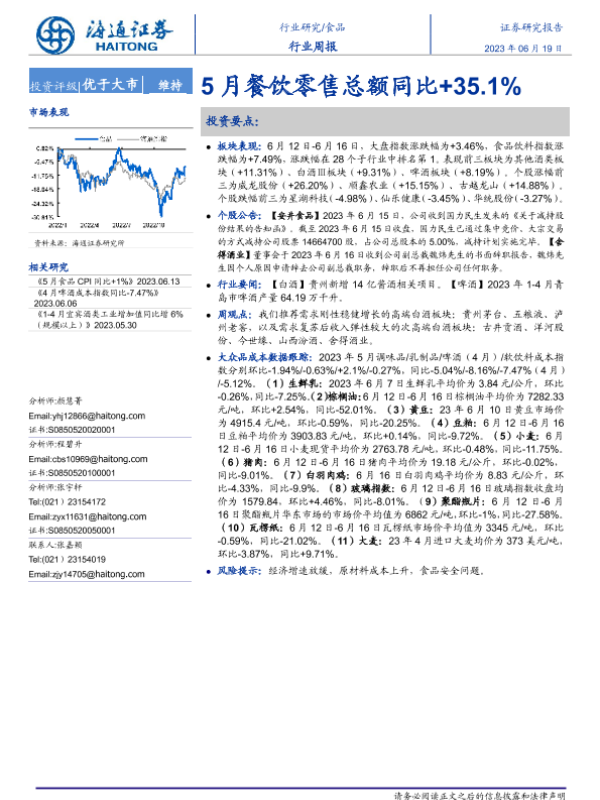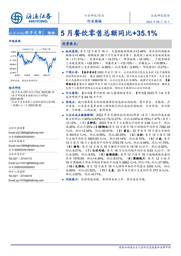 【海通证券】【20230619】20230619-海通证券-食品行业周报:5月餐饮零售总额同比+35.1%-17页