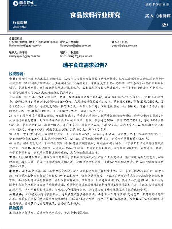 【国金证券】【20230625】20230625-国金证券-食品饮料行业研究:端午食饮需求如何?-12页