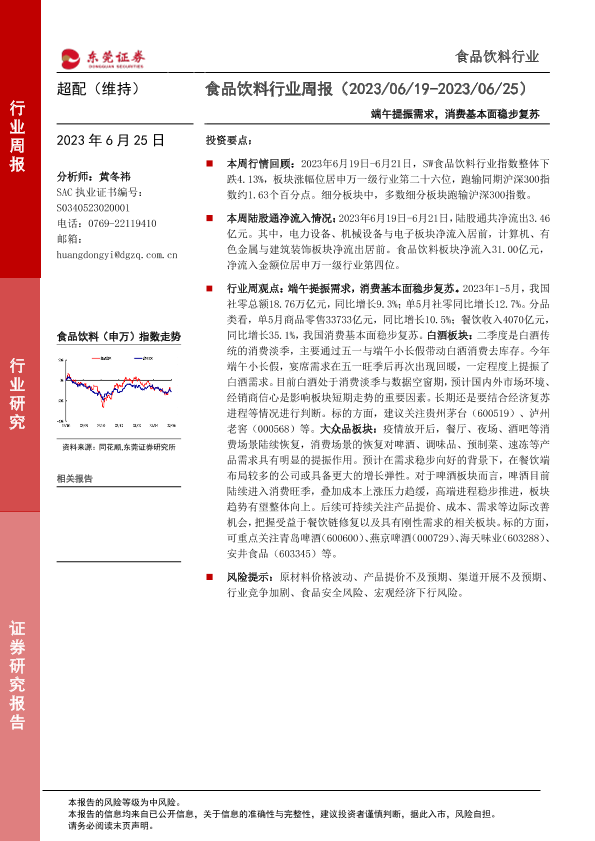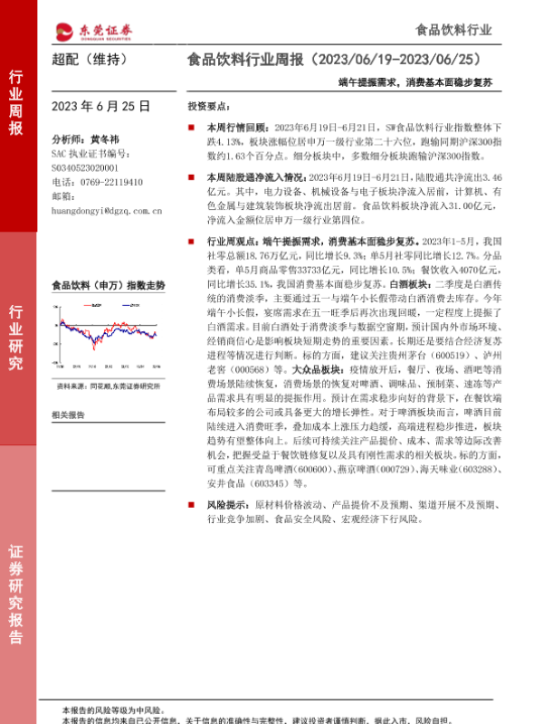 【东莞证券】【20230625】20230625-东莞证券-食品饮料行业周报:端午提振需求,消费基本面稳步复苏-14页
