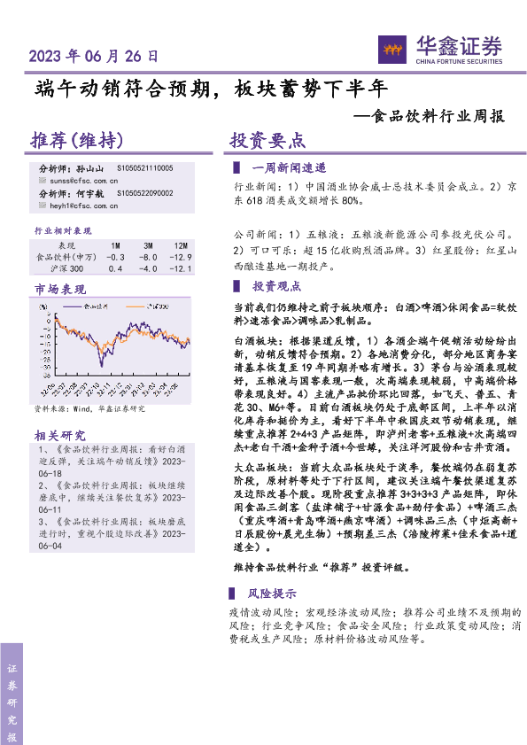 【华鑫证券】【20230626】20230626-华鑫证券-食品饮料行业周报:端午动销符合预期,板块蓄势下半年-20页