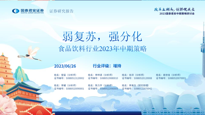 【国泰君安证券】【20230626】食品饮料行业2023年中期策略:弱复苏,强分化-48页