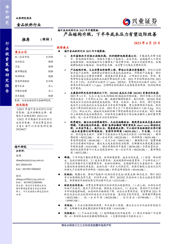 【兴业证券】【20230625】海外食品饮料行业2023年中期策略:产品结构升级,下半年成本压力有望边际改善-40页