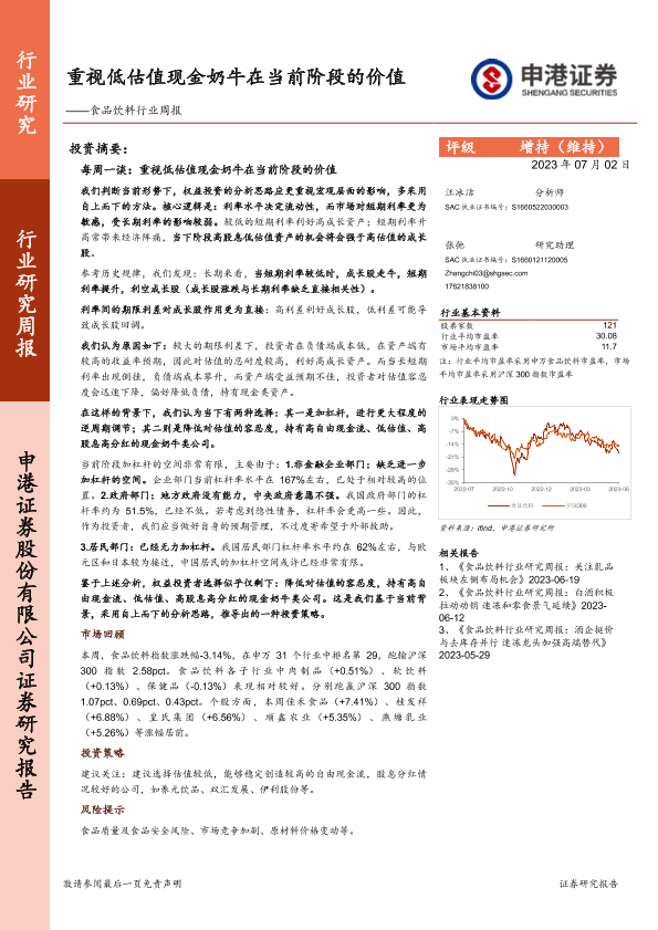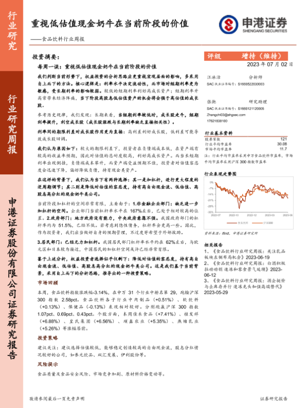 【申港证券】【20230702】20230702-申港证券-食品饮料行业周报:重视低估值现金奶牛在当前阶段的价值-23页