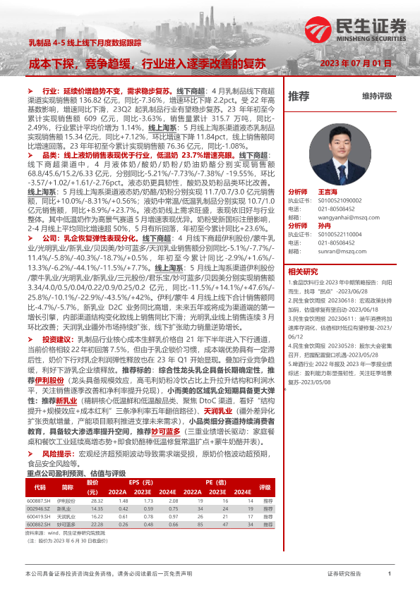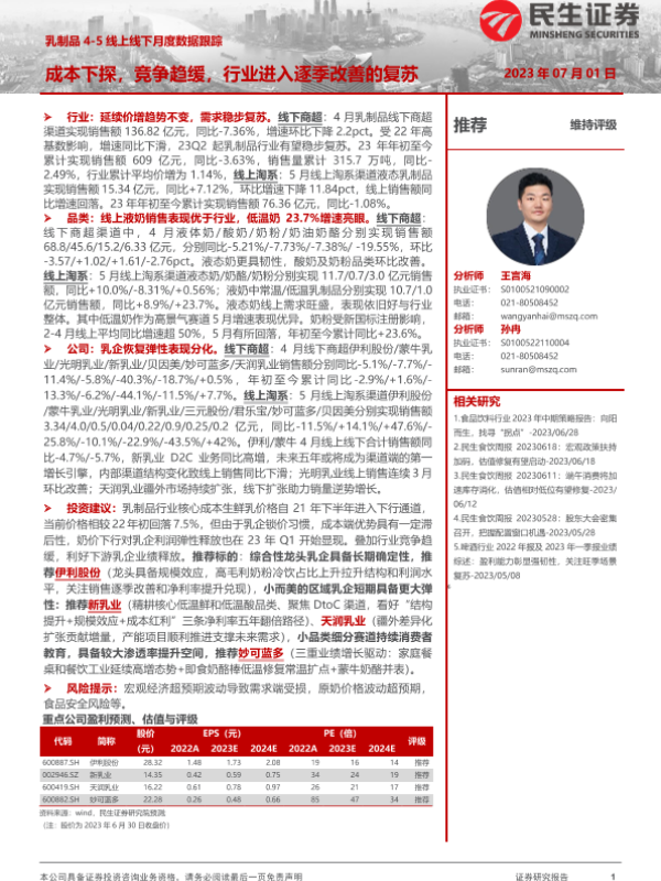 【民生证券】【20230701】20230701-民生证券-乳制品4-5线上线下月度数据跟踪:成本下探,竞争趋缓,行业进入逐季改善的复苏-25页